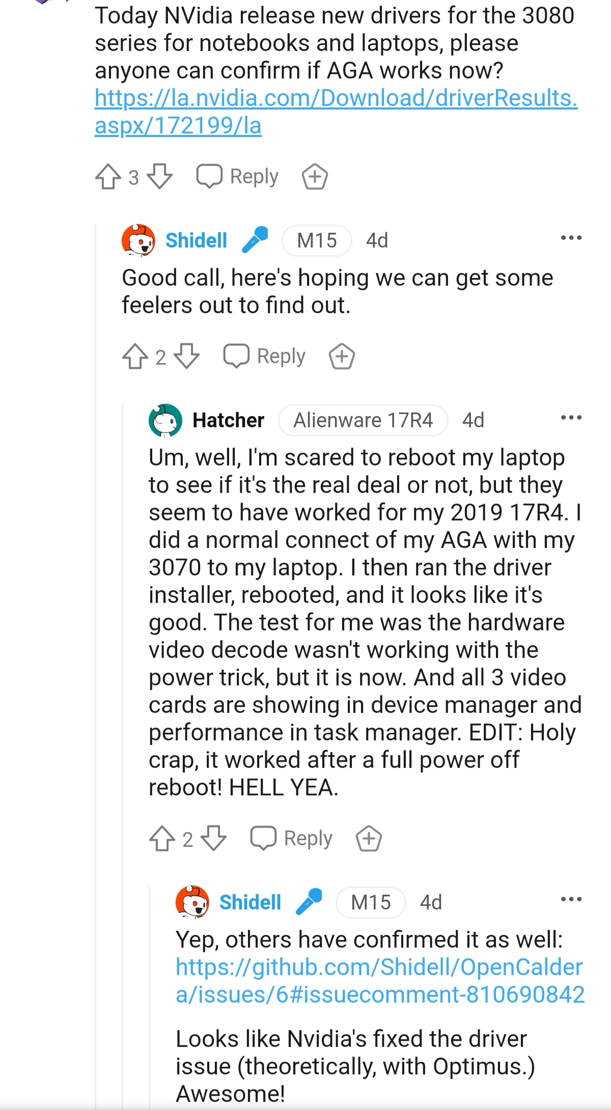 "If you see the Discord AMA, AW committed to working with Nvidia to get fixes out "soon."