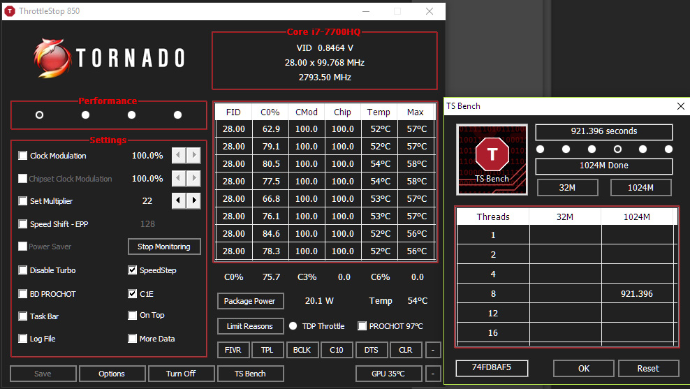 Uncheck both c1E and Speedstep. Enable speedshift in main and TPL window.
