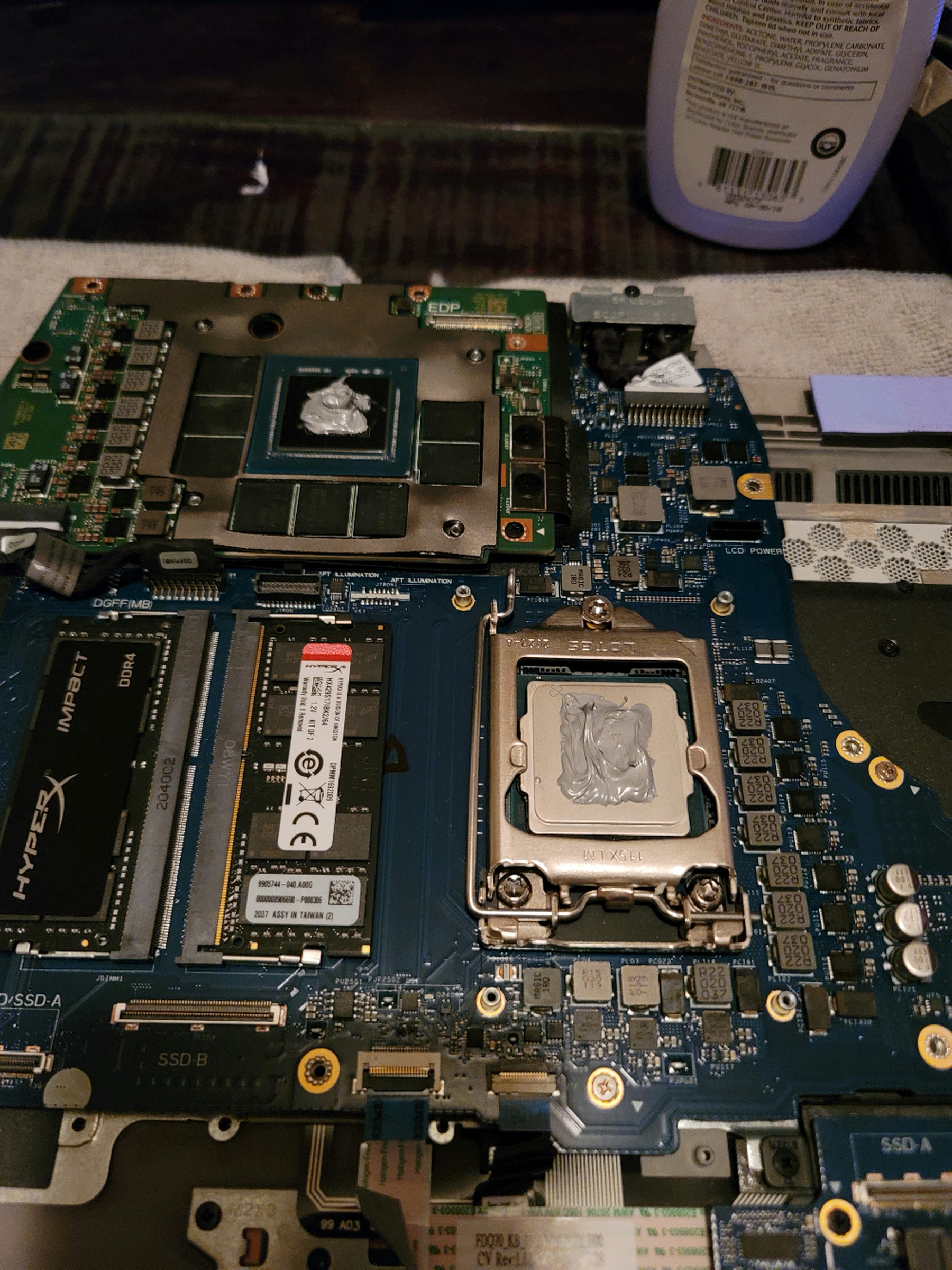 I'm thinking my pea size application isn't enough for the IHS and graphics, especially since the onboard 2080S graphics is running about 5 deg higher than it was before. I'll disassemble tonight and check/repasted again probably with a lot more paste.
