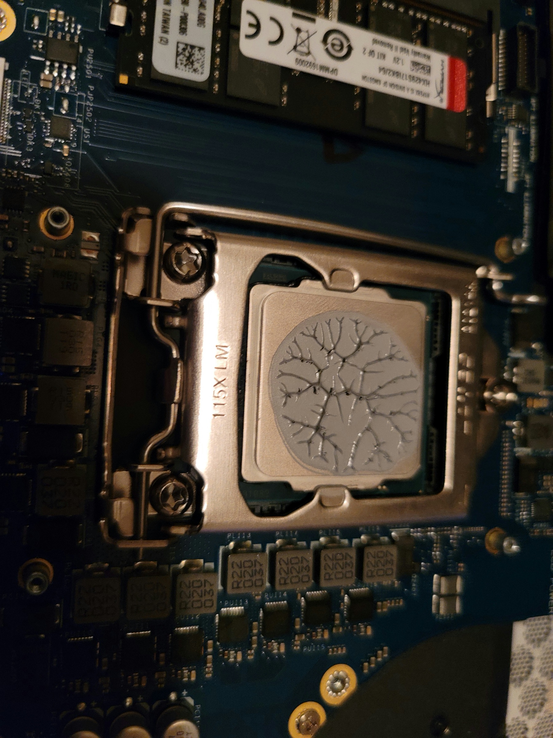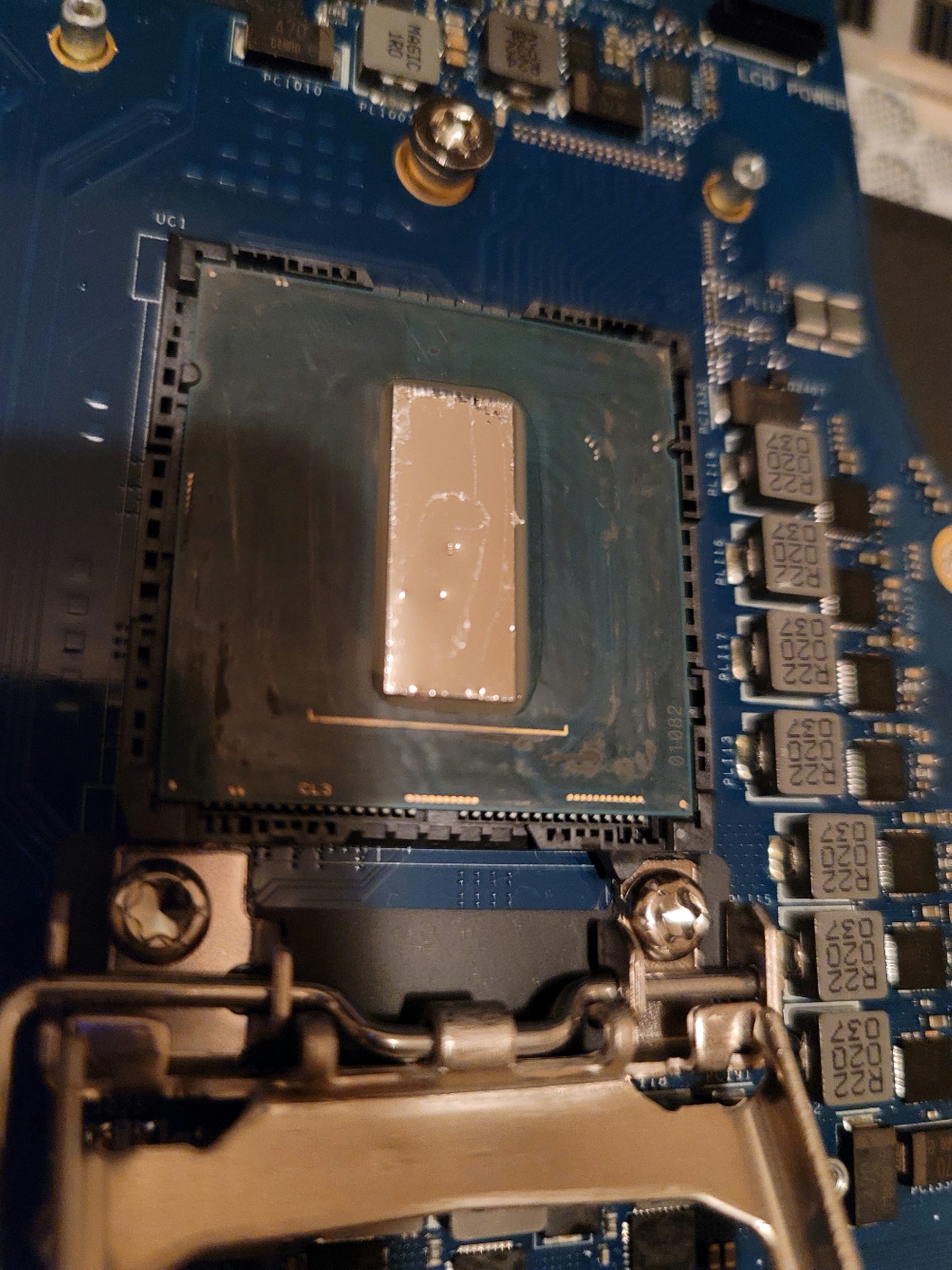 After repasting with a healthy amount of Arctic MX-4 I reassembled and tested again. Results were much better than the first repaste. After considerable testing, I compared my results to my original bench from before the delid and repaste. I have gained about 4deg C hotter. The opposite of what I was after. I used more liquid metal than most of the videos I saw with the 10th gen cpu so I don't think that's my problem. Maybe MX-4 was inferior to what Dell used to paste @ Compal? The original paste was pretty well done for sure and had ample material. I dunno.