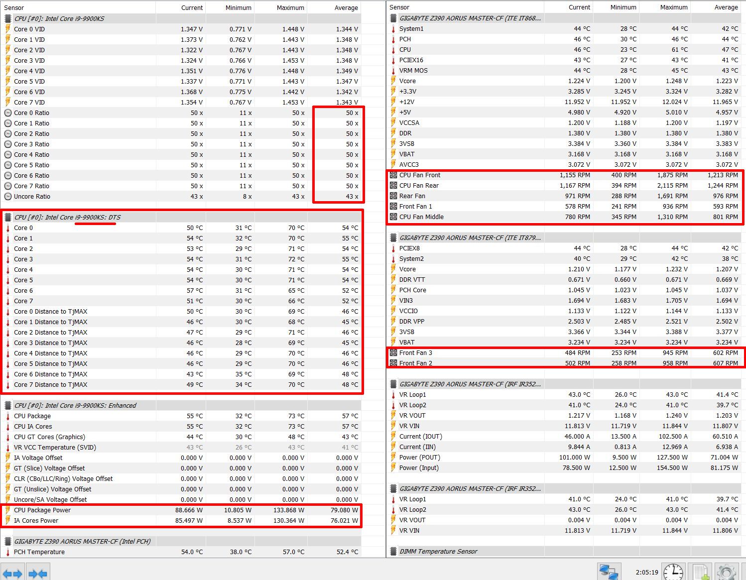 I only have some HWinfo logs from my desktop-PC. I did few small tests with stock settings in AC Odyssey. No LM, no lapping, no copper IHS or something else. Just install with kryonaut and an air-cooler. With the KS @ 5,0 GHz all core i've nearly the same power consumption (CPU package power) as before with the 9900K @ 4,7 all core. Overall runs the KS with higher clock cooler and less fan-speed.