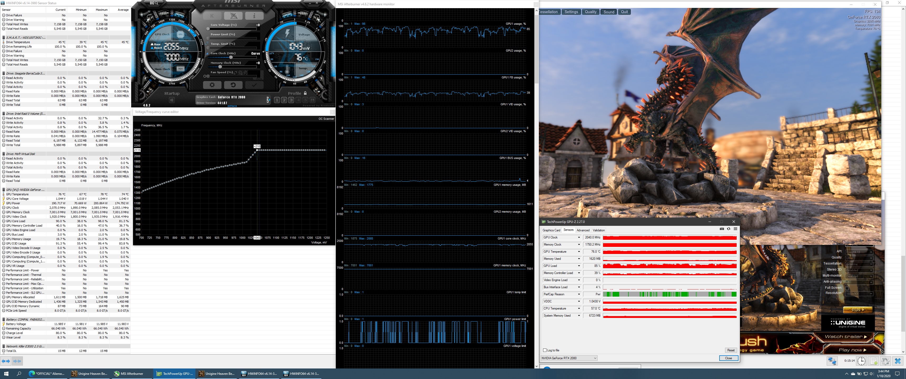A curve that DOES work sort of that I tried last week on my Area51 was to start at 968v and 1900 - 1950 MHz …. the biggest reason I am NOT using a curve on this laptop is I got much higher temps using theoretically the same offset +130 in a handmade curve then I did just setting the core clock to +130 … the FAN response was much worse using a curve at least here, but every curve I tried ( and I tried quite a few going up from 968v in 10 - 20 v increments ) got me less MHz and less stability then simply upping the core clock, there *may* be a tolerance difference between all our GPU's as well / I am inclined to think Dell / Alienware cuts corners everywhere they can in manufacture and parts sourcing / just to be able to afford all that advertising and HUGE support apparatus they have ( not that they get their moneys worth from that support investment IMO )
