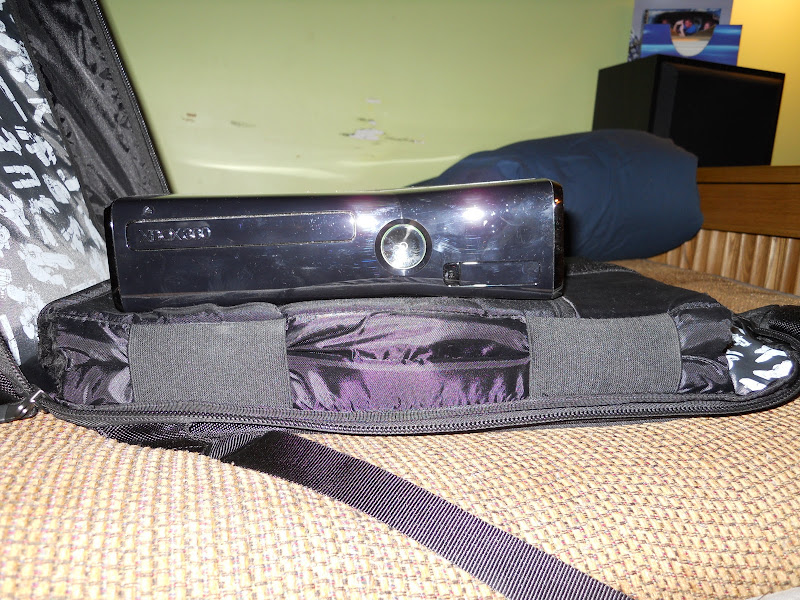 As for the main compartment of the bag. There is one very well padded large sleeve for either your computer or gaming console. I keep my laptop( Alienware M15x R2 ) in this place, and when i carry both my computer and Xbox360, the Xbox fits nicely in the part between the sleeve and the inside of the compartment, this whole part is very well padded, including the bottom!