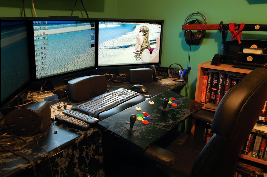 dont forget the other stuff like the Audio Technica A700's on the wall and you can see the Logitech Ultimate Ears Triple.Fi 10's a few pictures up sitting on the desk behind the keyboard.