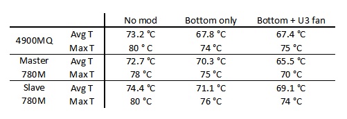 Thank you , i am not gonna modify it so what is the difference between the temps when the (laptop is just elevated) and when then (the cooling pad is working)