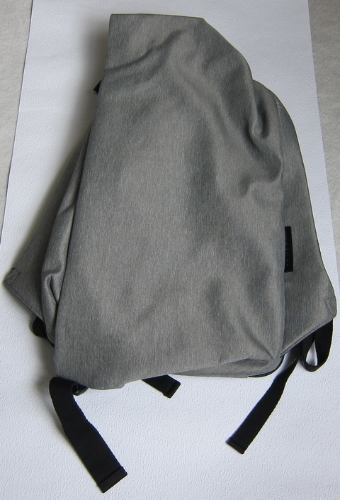 Worn pack in shot below is empty save for the 17-inch Macbook Pro. If you compare between the shop images and my worn pic, you can see how the pack expands when it has stuff in it. But the expansion is asymmetrical due to the oversized one-side-fastening 'flap' on the front of the backpack. And because of the way it opens, the pack doesn't actually have a regular bottom like most backpacks. Put it this way, it's like carrying a soft holdall on your back.