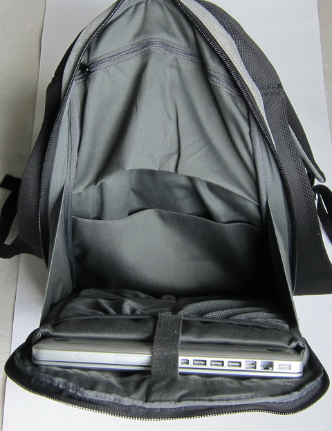 The internal compartment is basically just one large vertical holdall as I said, and there are no subdivisions inside the main compartment - just two small zipped pockets, suitable for wallets, etc and two straps for holding larege objects in place. There are subdividisions in the laptop compartment, and while these are separated from the main compartment literally by a piece of (non removable / non-reconfigurable) cloth, that cloth doesn't really stretch to accomodate larger objects like a thick book. And to get at the laptop compartment, you have to turn the straps out, so it's not a quick 'whip off the pack and unzip compartment'.