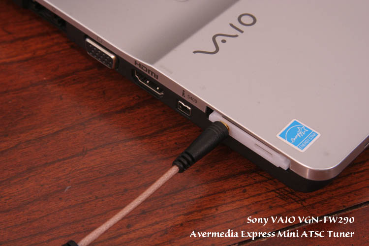 Avermedia AverTV Express Mini ATSC TV tuner fits flush in the ExpressCard34 slot. I've left mine in there since AUGUST of last year. No problems or issues. When it's time to fire up Media Player for some vegging out, a small COAX adapter plug clicks into a tiny jack at the end of the card. I'm running this under Windows 7 64bit.