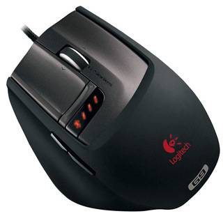 It's Logitech's best gaming-oriented mouse. Its laser engine goes up to a pretty impressive 3,200 DPI (it's actually 5,000 now on the new G9X), it has 5 buttons (left click, right click, scroll wheel, two thumb buttons), which is an absolute necessity for me. You can adjust the DPI on the fly with a little screen on the mouse itself. The scroll wheel itself is great; it's got hyperscrolling mode and a traditional notched scrolling mode.