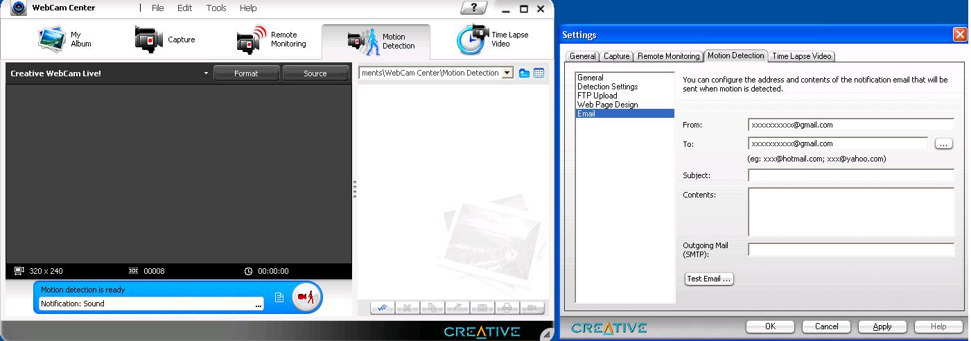 I think that is a different camera and it doesnt tell anything about motion detection, that manual is mainly abut how the tracking of the new creative cameras work