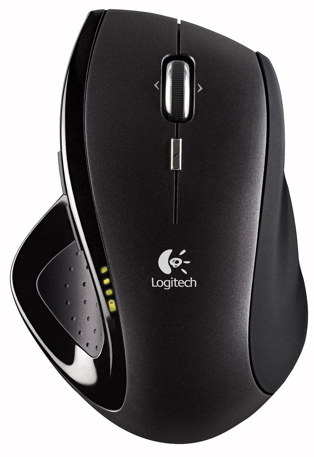 The great thing about the Performance MX is the small wireless reciever and that there is a physical button that controls how the scroll wheel behaves. -