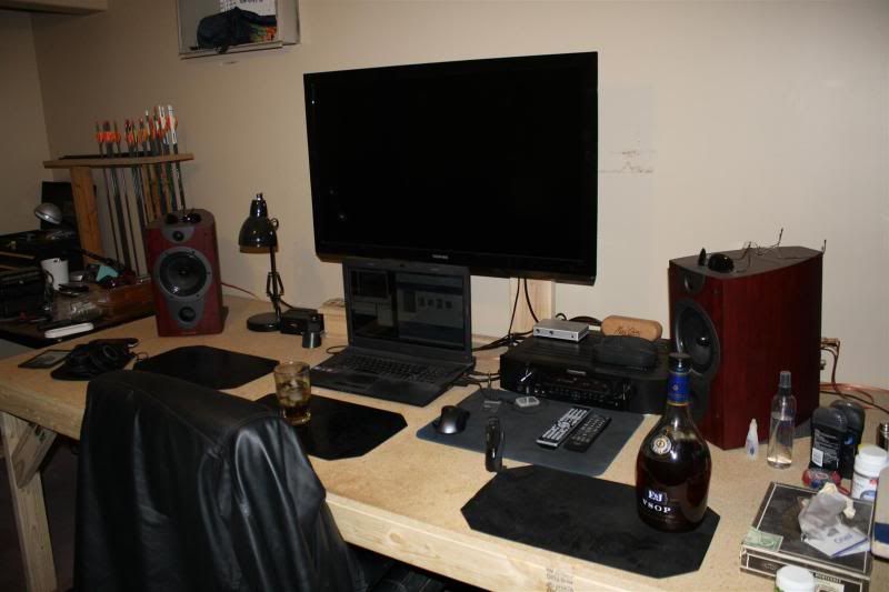 Cool desks you two and thank you for taking the time to post the pictures of your desks! Thank you for the suggestions and maybe building it might be my best bet. I could get them at the store to cut the pieces I need and I'll just put it together. I want something with a nice finish though, what is your top made of KLF?