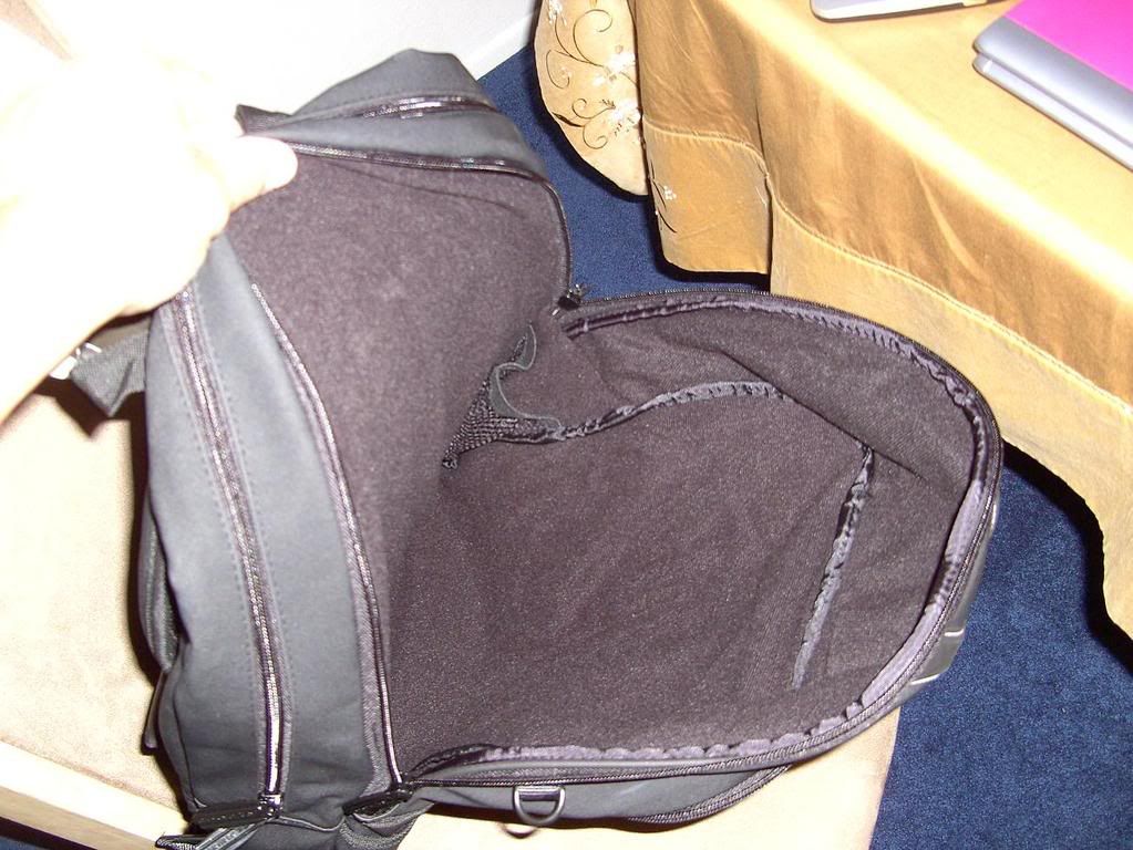 Now we move to the first large compartment. This is actually large enough to hold a 17" notebook... yes its that big. It is padded some but not as much as i would like for a notebook. If your using this area for a second notebook i would suggest you get a notebook sleeve for some added protection. There is also a really small mesh pocket in the bottom corner you should be able to see it in the pic.