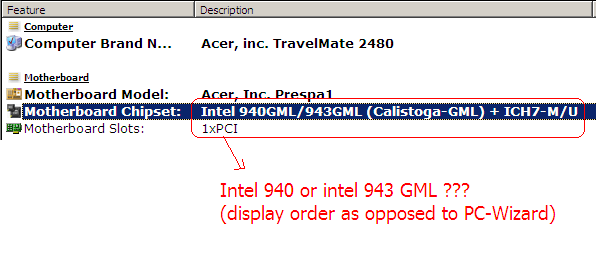 It's Intel® 940 GML Express, as it says on the label. The programs can't distinguish it from the 943, so they report it like that.