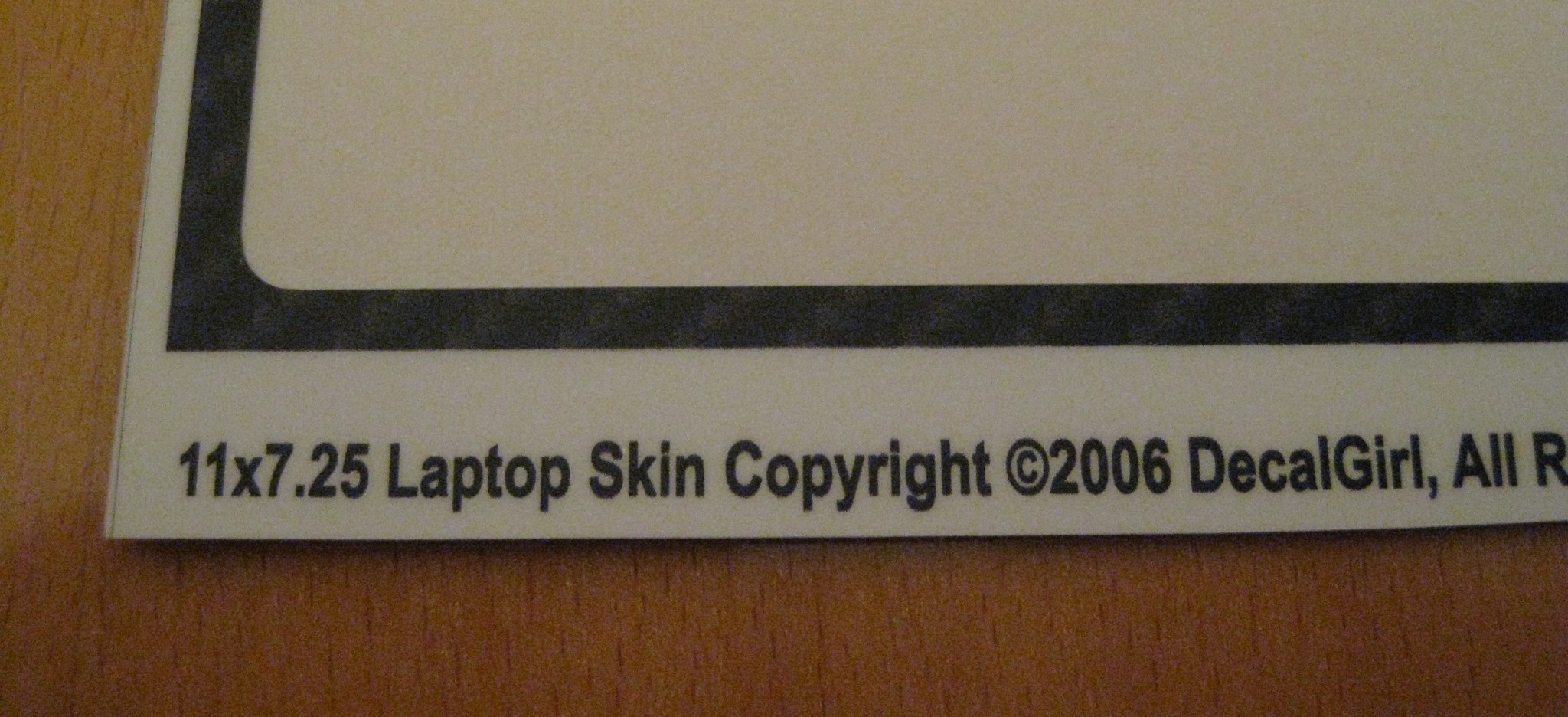 I should mention that, as one of the pics above show the backing sheet the skin came on, the dimensions shown are what I specified for the 'Custom Cut', since there is no Acer 1810T specific skin.