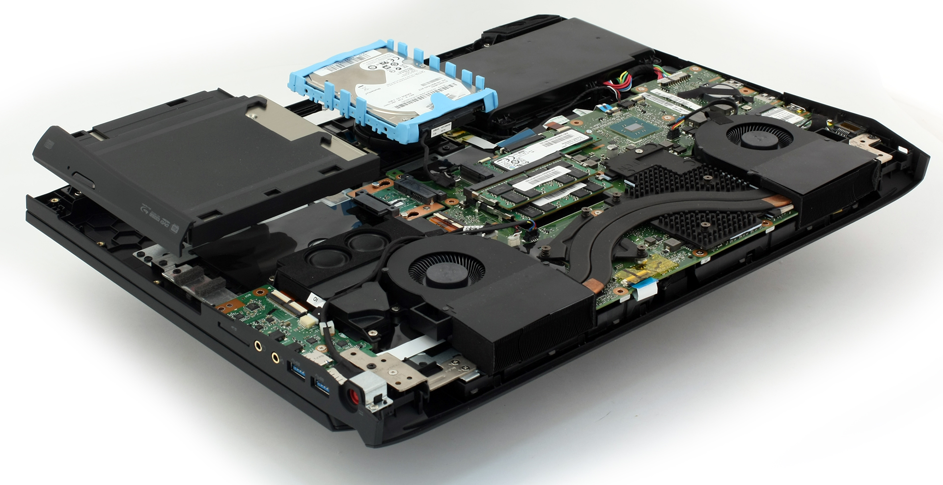 I really don't get how they thought adding an optional fan that slots into an area under the palm rest (and hence far away from the CPU, GPU and heat sinks/pipes) would help cool the major components. If anything, it might actually impede proper airflow inside the chassis. -