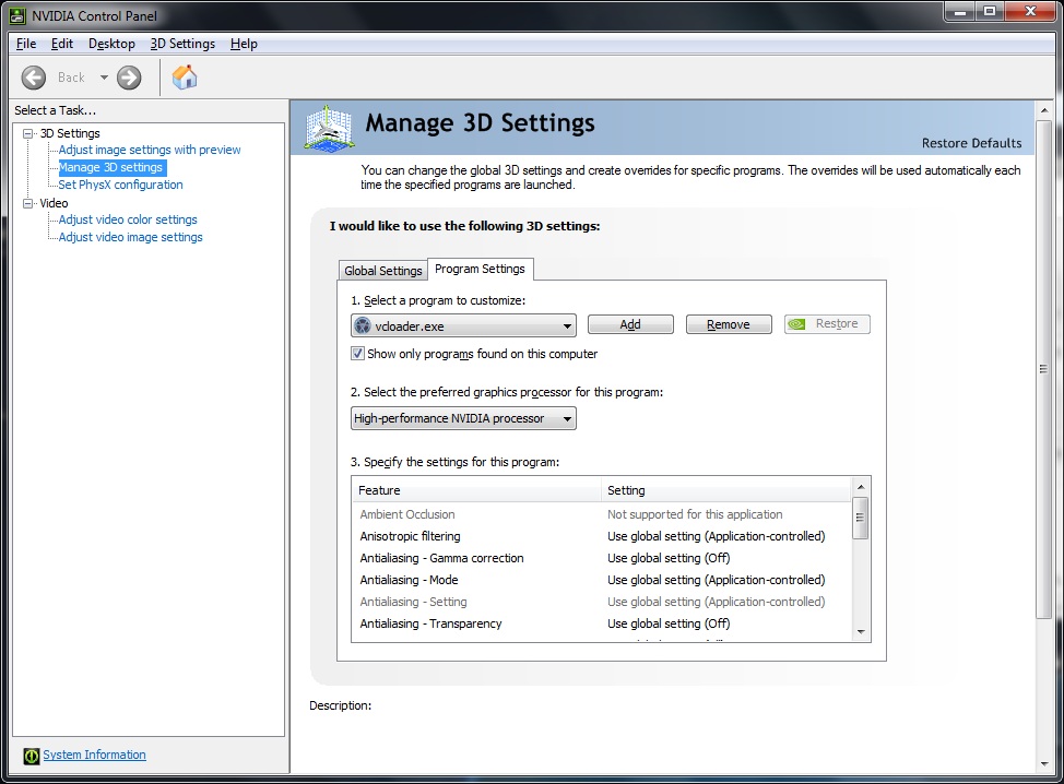 Yeah brov, i selected 'vcloader.exe' to use only the Nvidia processor. I attached pictures to show u wat i am experiencing