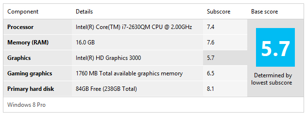 also i dont understand why my graphics WEI in win7 is higher than in win8, see attached screenshot (hard disk WEI is different because win7 is on HDD and win8 is on SSD) -