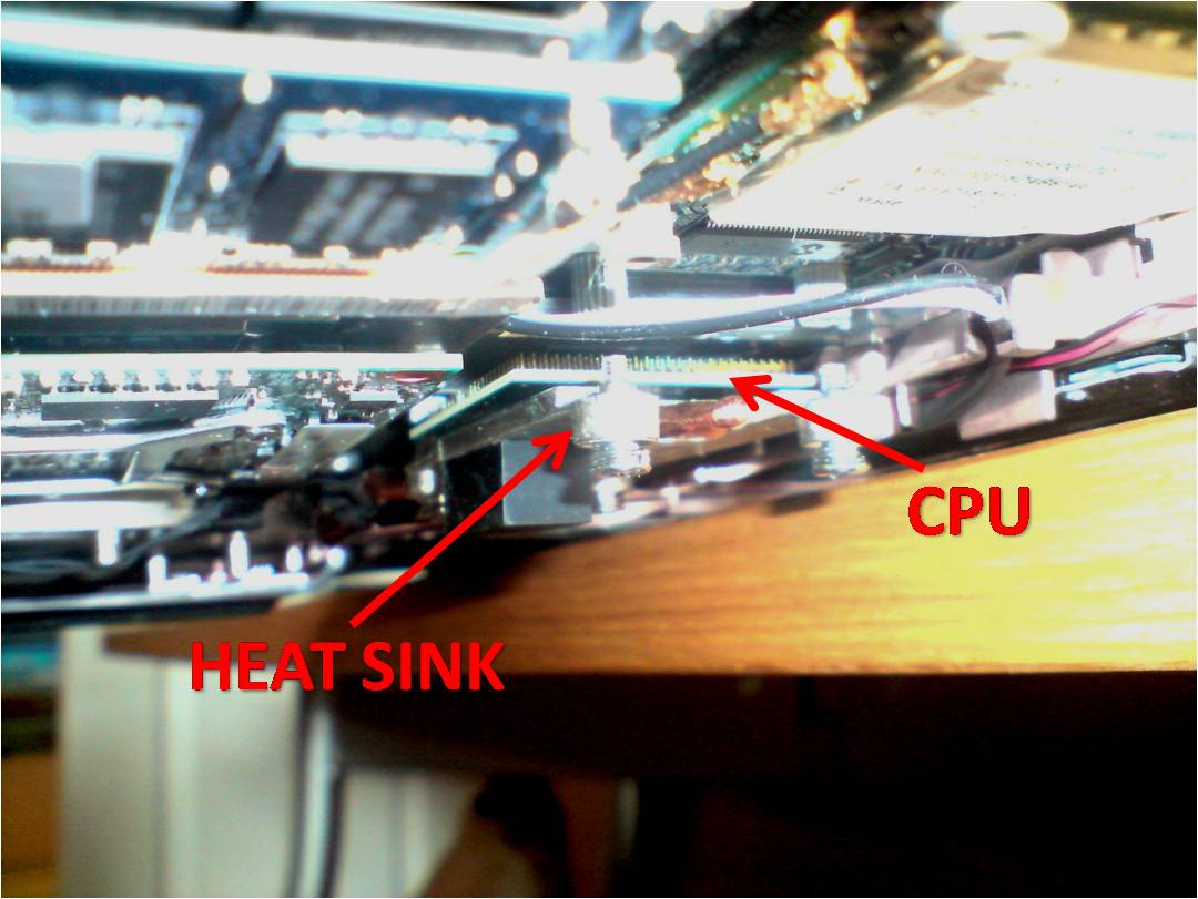 Now you see the heatsink for the CPU and the graphic card (GC) sitting on top of the other part of the heat sink.