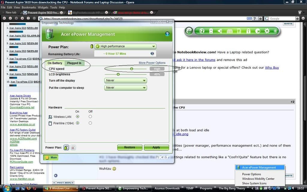 #2: I have installed all the Acer Empowering utilities (power manager, performance management ect.) and none of them holds any options / settings related to CPU speed...
