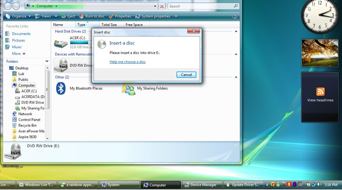Hey guys, I have an Aspire 5630 and i have upgraded to vista, and i deleted eRecovery by accident. Is there any way i can restore the laptop to its factory default? I have the eRecovery which i backed up when i first started the computer up if thats any help.