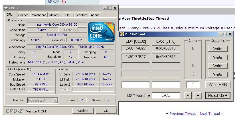 January 26, 2010 - Version 1.91 - Fixed minimum voltage for Core 2 mobile CPUs with 200 MHz BCLK. Thanks moral hazard from NotebookReview.