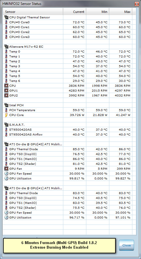 1 pic after 6 minutes of furmark 1.8.2 (multi GPU) with extreme burning mode Enabled