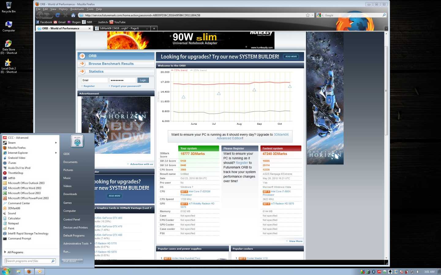 Here is the 3DMark Vantage of the two system. R1 with PhysX on.