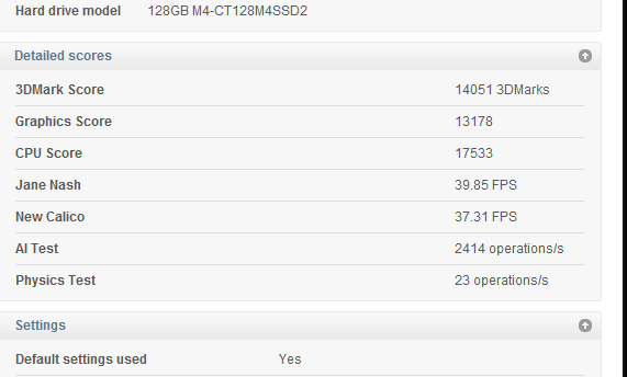 Dr J...here is my stock 715/900 run as promised earlier...I7 2630qm. The driver is 11.9