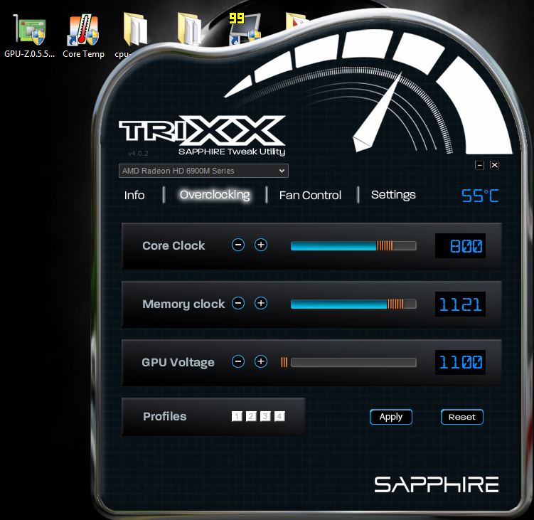 I second that tapakidney said. I myself have been using just AMD's overdrive settings to play with plus 3DMark to bench.