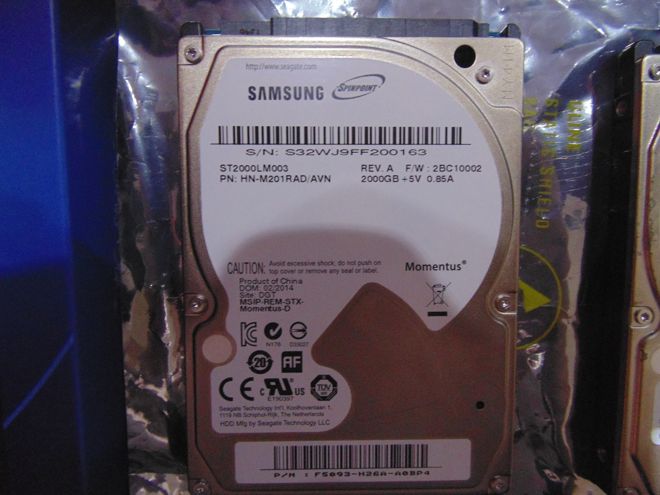 A closeup of one of the 2TB drives (front and back):