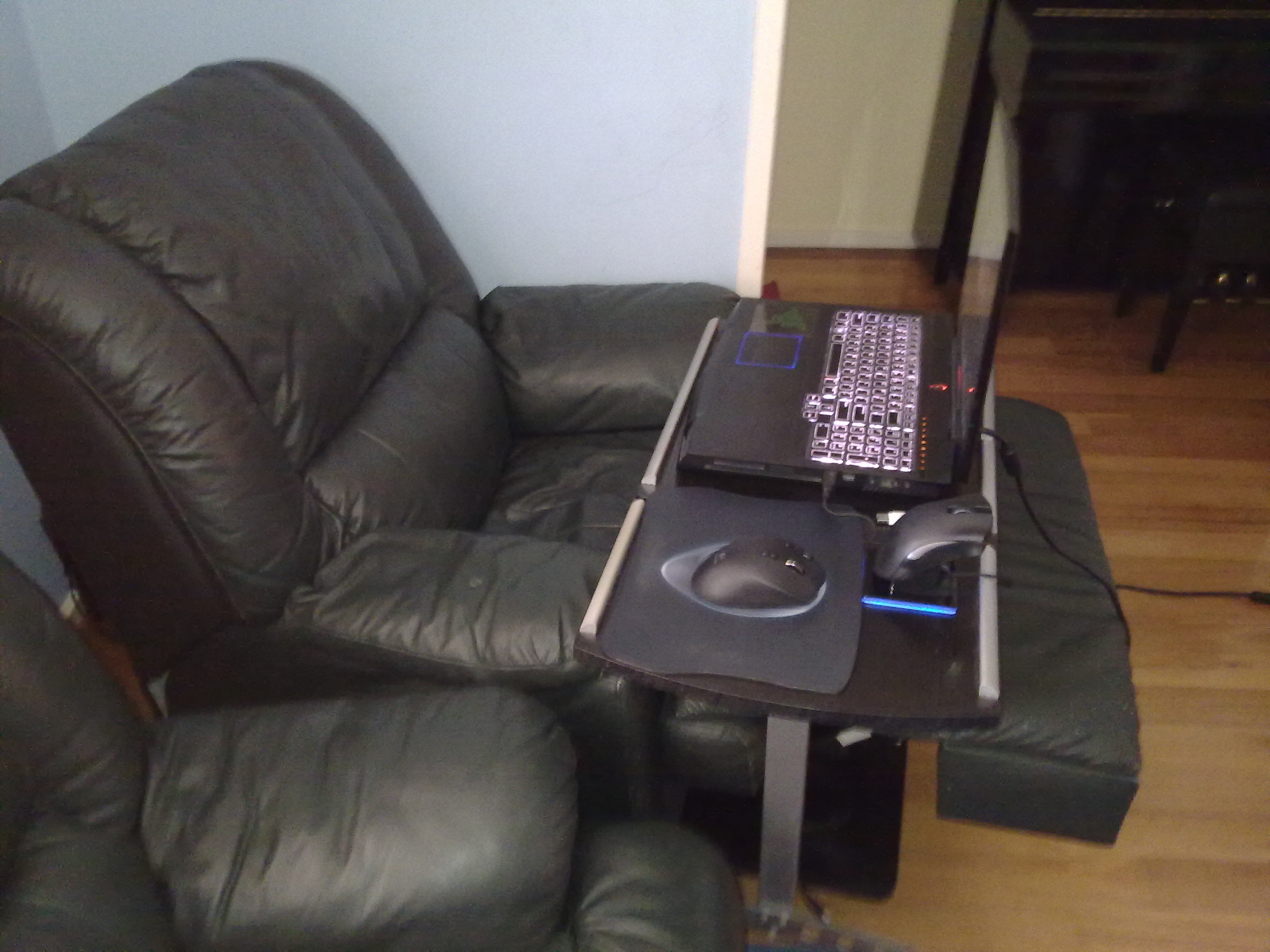 Lol i have that same stand! i also use a padded stable stable on the couch and modded it to prop the back up a little (cooling). its very comfy as the bottom is fill with beanbag beans