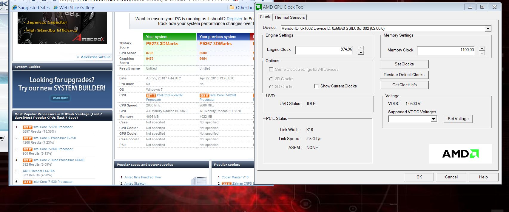 Also these pictures that you are linking... that's 3DMark Vantage run right? It looks pretty close to 4870 CF. Can you please give more info for these runs, like CPU-Z, GPU-Z or something?