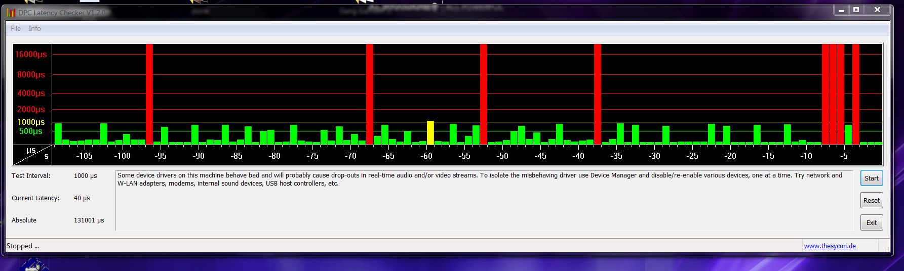 Anyone knows if this is true, after 3 hours with Costa Rica tech support...he told me that if you use AC power you'll have less stutter sound/video than battery? As soon as I unplug the ac cord...red bars hit the roof? Is that normal...anyone can confirmed this? Tech also say that when testing test it with nothing running...close all programs? is that rite...how do we know that it won't stutter agian...well, after 3 hours it looked promising..with all low greens than I went to youtube DAM!!! agian...at the beginning of a video...then stops..should I respawn the OS???? It's really starting to bugg me!!!