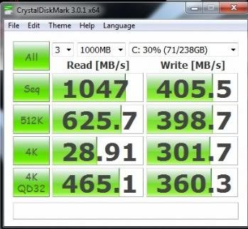 I only have a first gen Samsung PM800, and my numbers are way down on Tsunade_Hime's awesome SSD raid 0 setup... except the 4k read is basically identical... so my windows would load at the same speed as his if everything else was equal?
