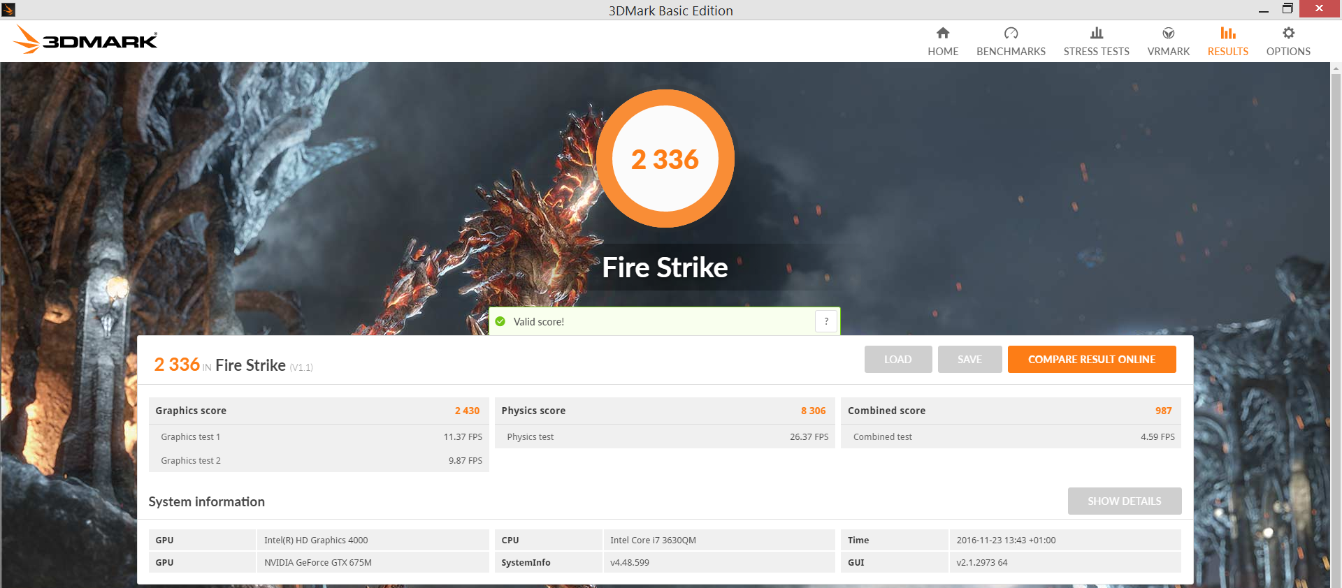 Now, please have a look at this latest Alienware 17 R3 (BGA crap) Firestrike result: http://www.3dmark.com/fs/8941795 Yeah I know, this is serious expensive hardware we have here: a 6820HK CPU and a GTX 1070, such Alienware laptop must cost around 2500$, no? Of course, my poor old laptop cannot beat this beast, this would be crazy what do you think?