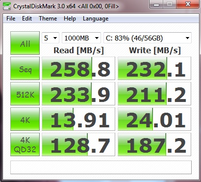 also run a benchmark using ATTO and see how your results are OCZ uses ATTO rates as their marketed rates.