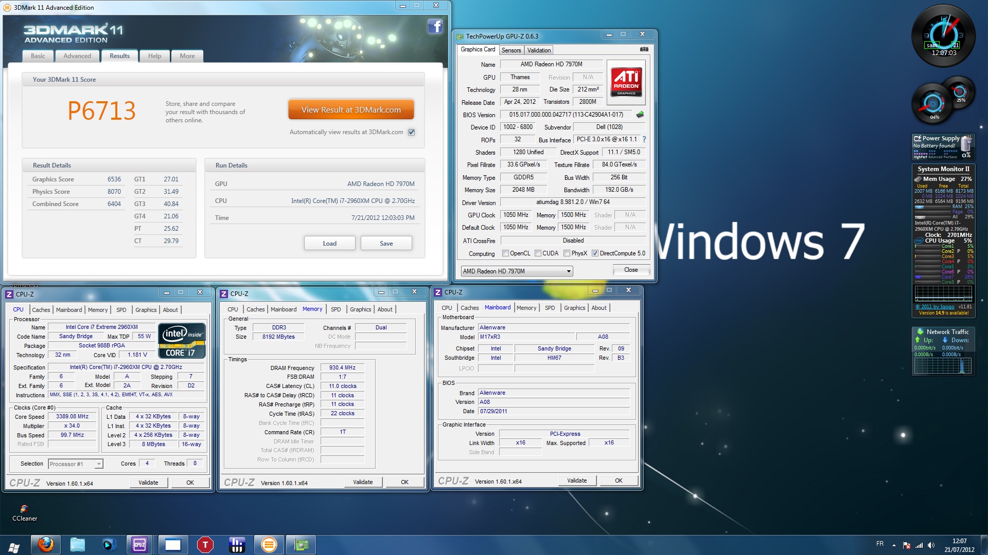 AMD Radeon HD 7970M video card benchmark result - Intel Core i7-2960XM Processor,Alienware M17xR3 score: P6713 3DMarksAttached Files: