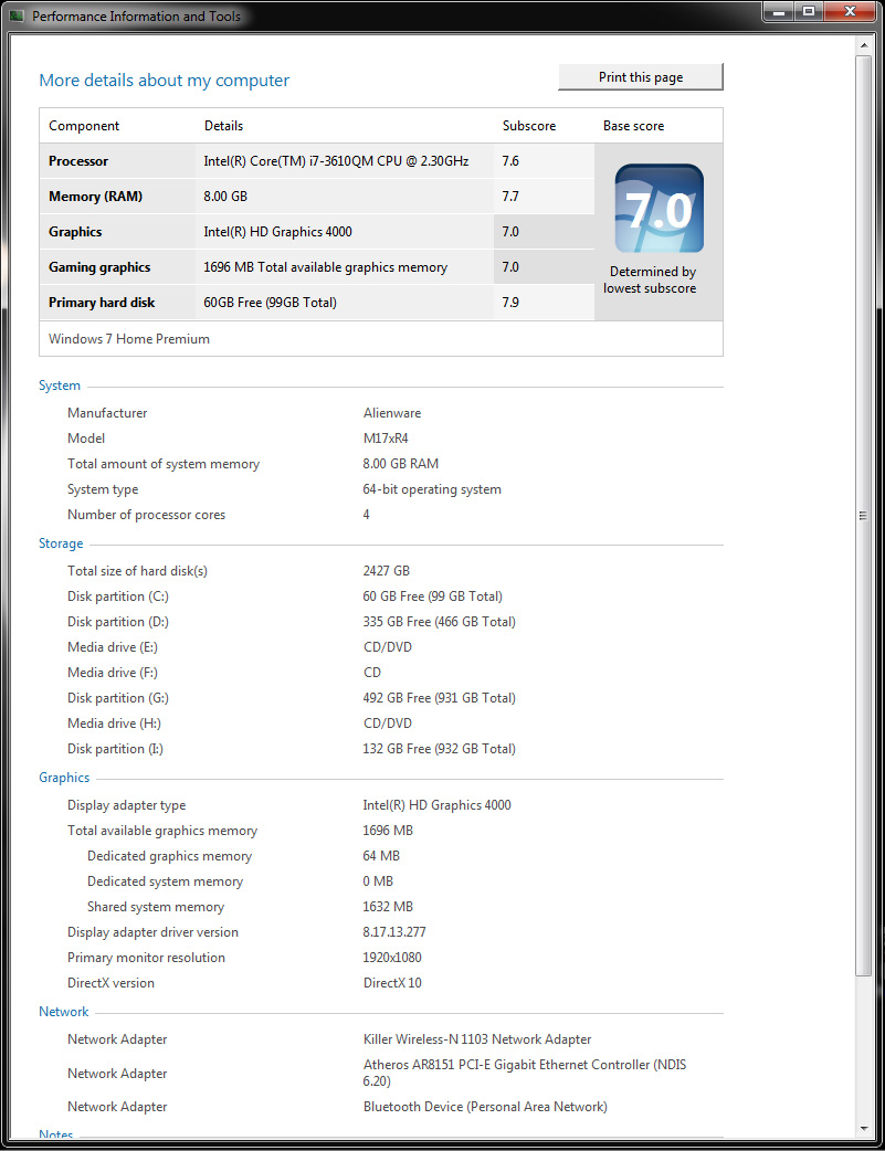 I wonder how do I get Windows Experience Index software to see my GTX 680M card? My system config on Alienware M17x R4: i7-3610QM, GTX 680M, 8GB RAM, 120GB Corsair Force GT SSD+500GB HDD, Killer wireless N. I am using the latest official driver from dell.co.uk website - 302.77, set the laptop to High Performance via battery icon.