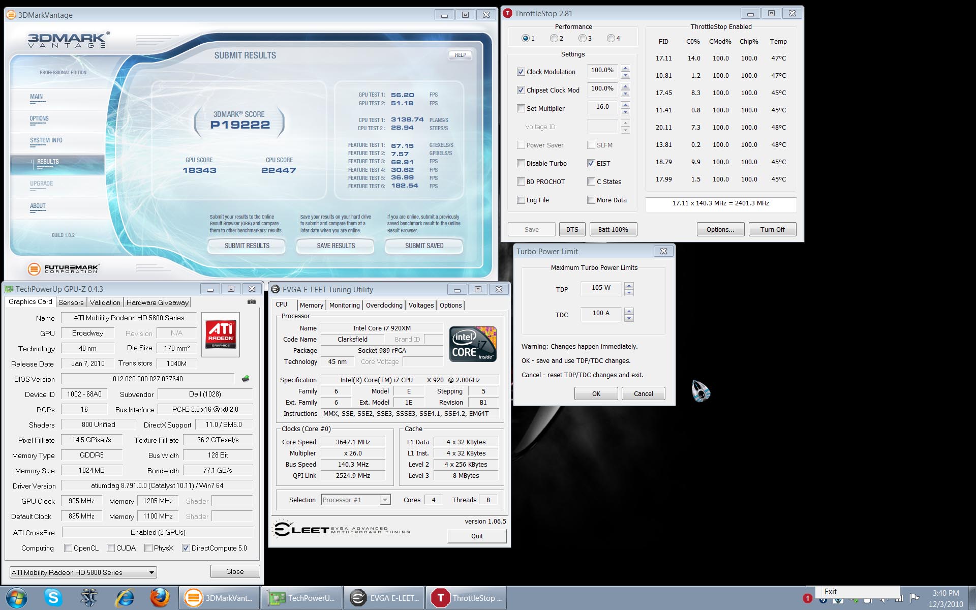 Basic test with a slightly OC'd 720QM and 5870s at 845/1130: 4444 Result