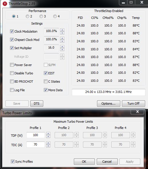 Being able to adjust the turbo Power Limits this high should easily let the 2820QM maintain 3100 MHz when fully loaded as long as a person can keep it cool. -