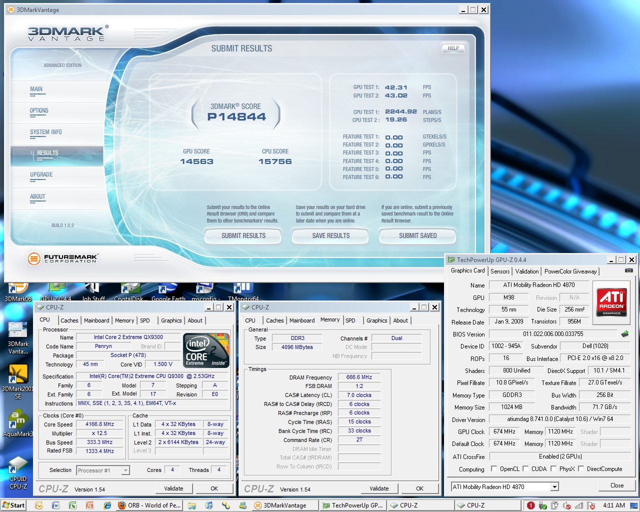 stamatisx's 23483 marks 3Dmark 2006 run with 2x Mobility Radeon HD 5870 @ 870/1100MHz -