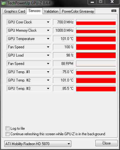 he's running furmark, 100+C is normal with that stress tester. I'm sure if he ran vantage and logg'd the temps through GPU-Z he'd find they only get up to ~ the mid 80s or even the mid-high 70s... Besides, a couple of people have speculated (myself included) that the 100C temps are the memory temps and not the core. The heatsink doesn't even cover all of the RAM chips and then it's just got that horrible gap pad as a TIM.