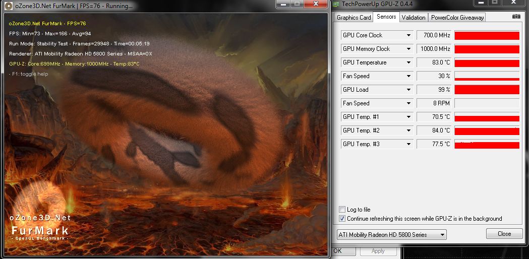 G751 is hawt. I confirmed that I had the AS5 applied wrong.. but multi-gpu furmark temps after 4-5minuites without a cooler: 84C