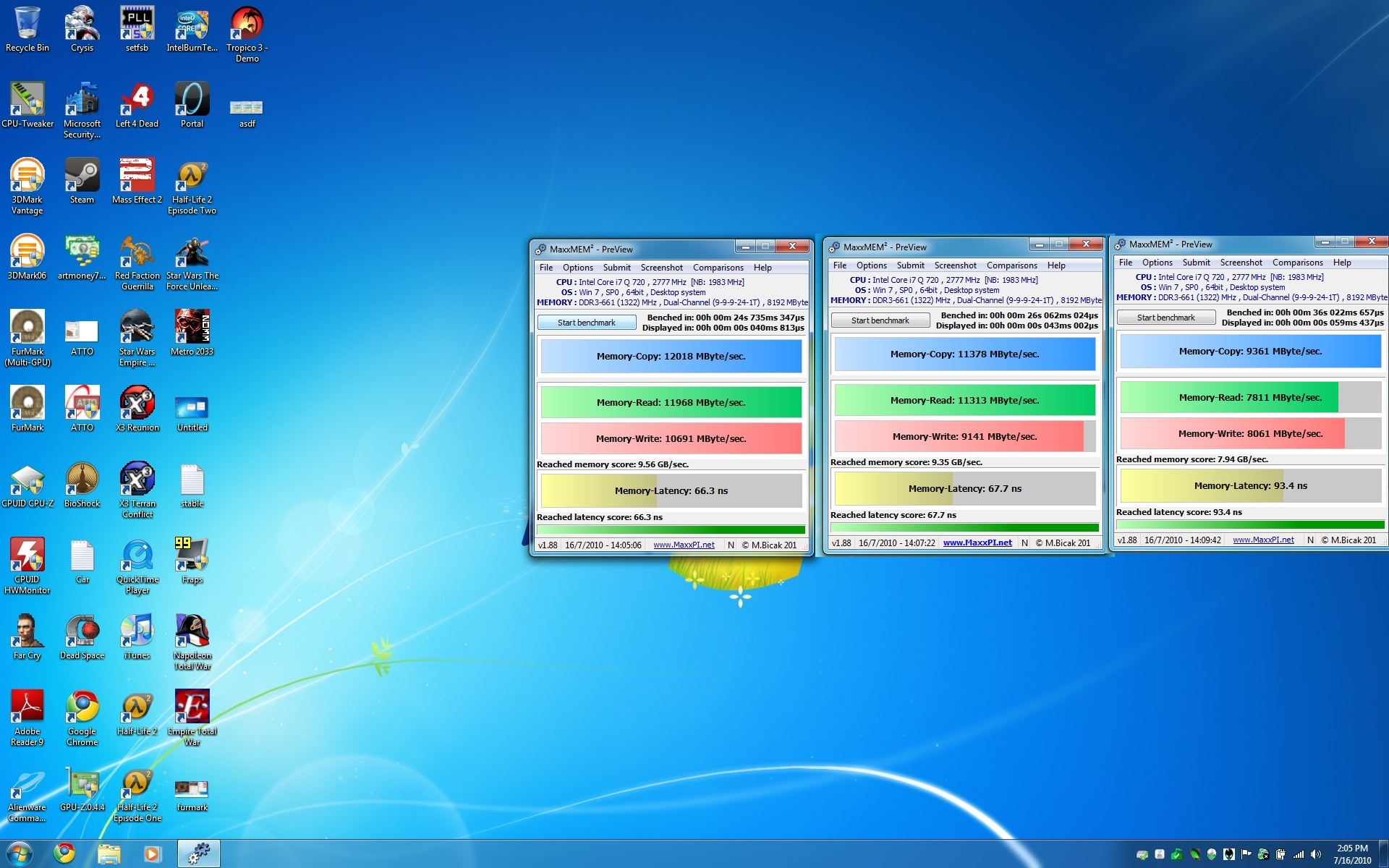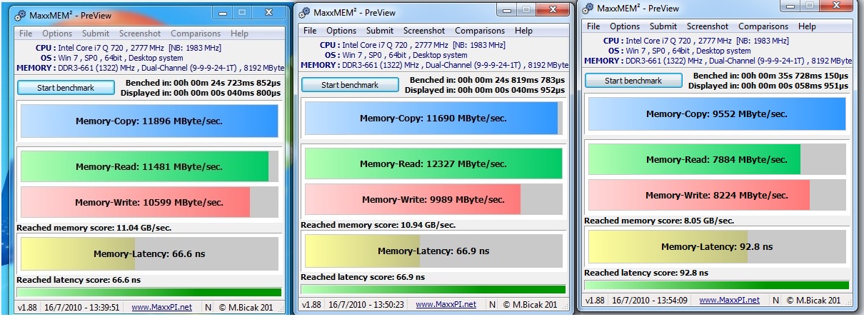 I am going to do some tests on my desktop to see if I can make any sense of it. Is a core i7 965 with tripple channel DDR3-1600