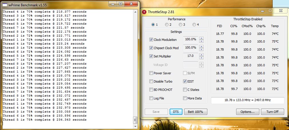 Downloaded throttlestop 2.81 and the only things checked are clock / chipset clock mod @ 100% each and set multiplier @ 16. Also EIST is checked.