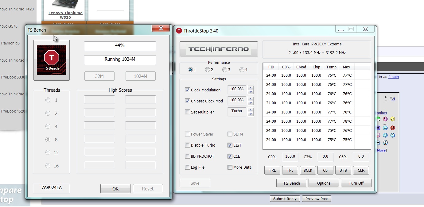 flingin can you report your prime95 temps because I am in low 80s too when I run TS bench 32m. However I have no doubt that if I run 24/24/24/24 in prime95 it will hit 100 after 10 minutes...