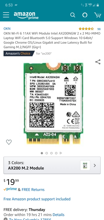 Well my day turned to crap. Was looking forward to installing my new wifi 6 card in my laptop today since it was suppose to be delivered today . Well this is what I got. See attached picture. So since this happened. I need to find a new card. The card I originally ordered is not longer in stock on amazon and not sure if it will be restocked. Can you recommend a different one? Or should I try to find one on ebay?