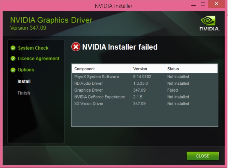 Not quite. The installer runs but it fails. Why? Because lovely Win 8 64bit only install signed programs. Meaning any mod (like the inf mod we just did), it refuse to install it.