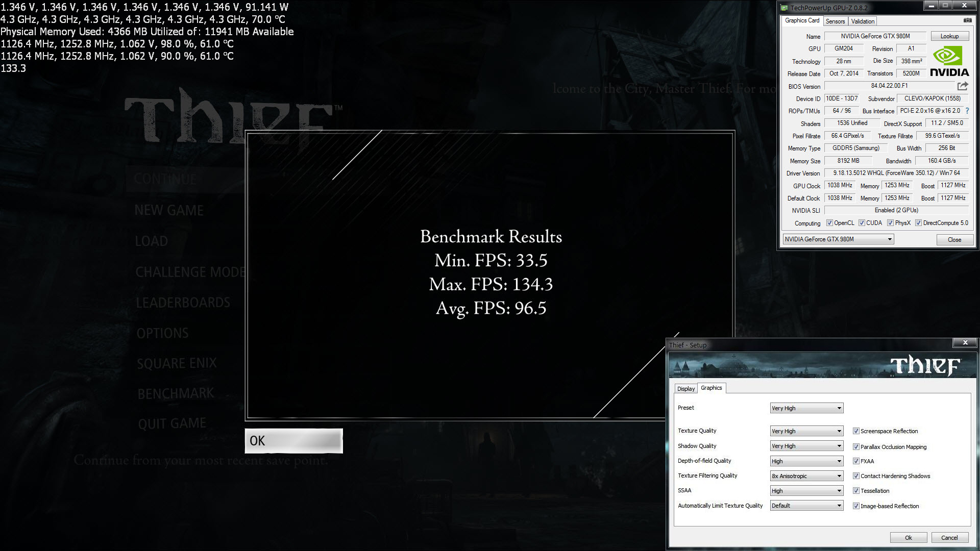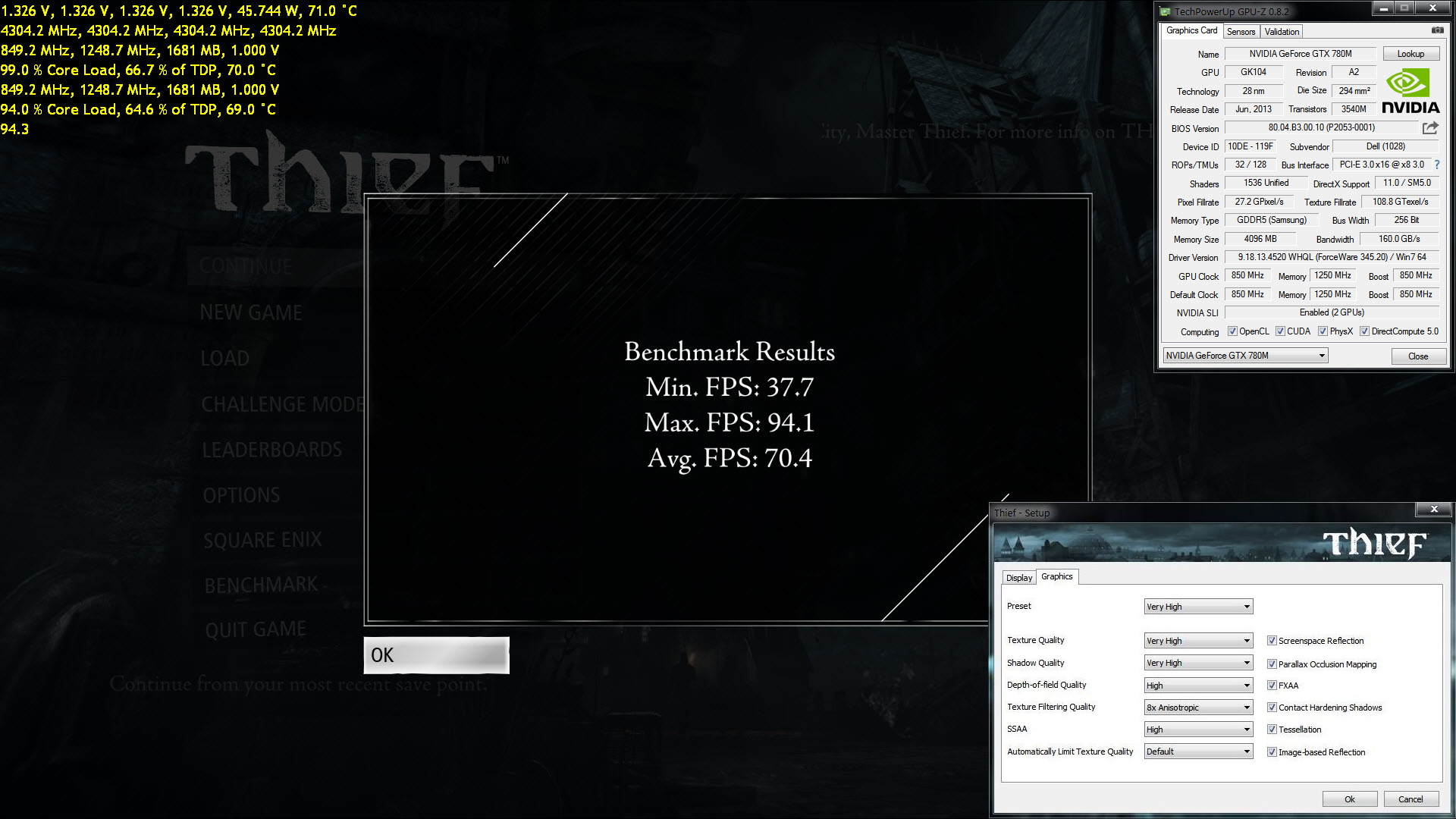 If you have the game, try Thief benchmark maxed out (1080p, no vSync, Very High preset) and see how the results compare to these. Both benchmarks are stock GPU, 4.3GHz on CPU.